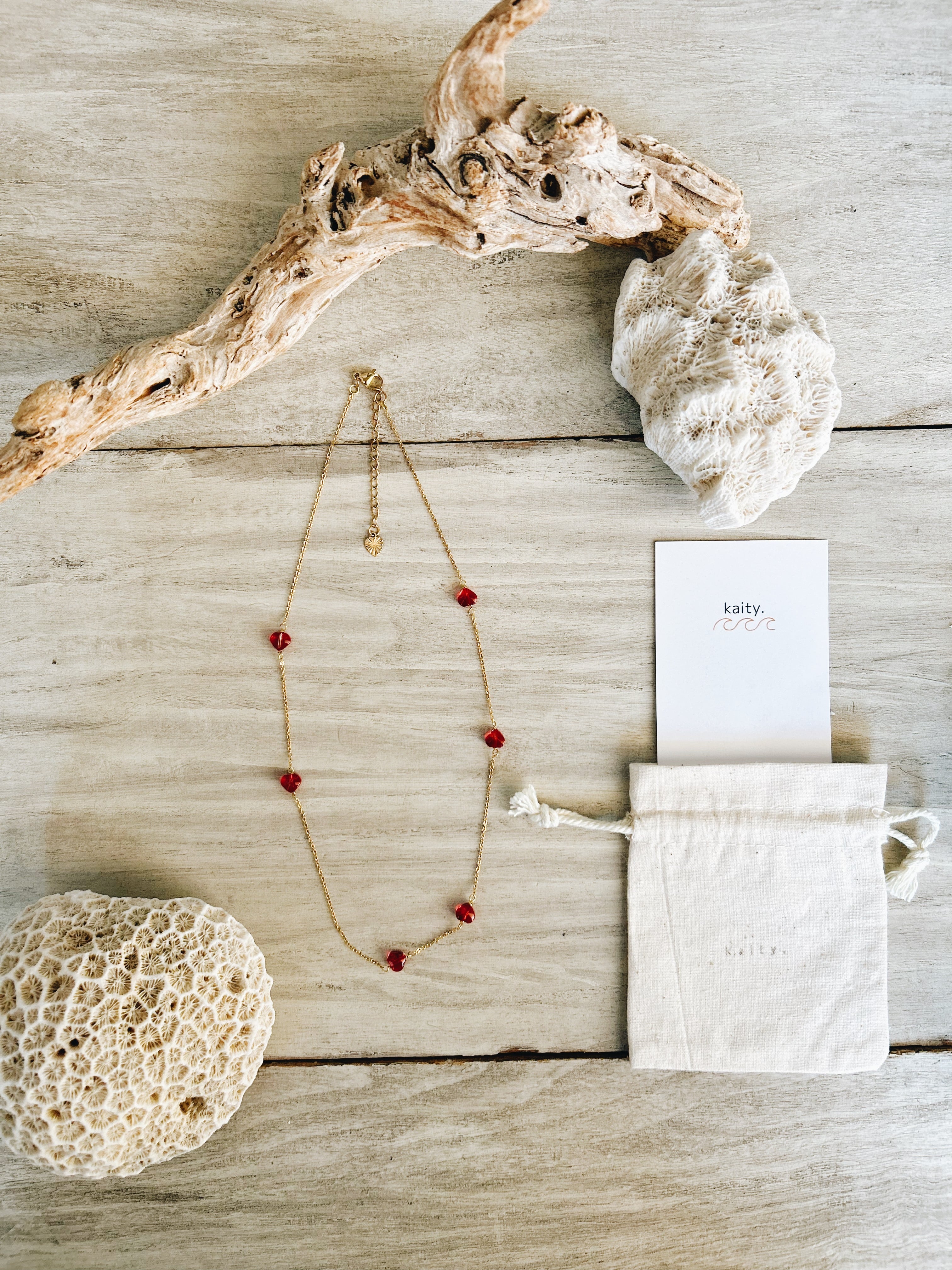 red heart station necklace
