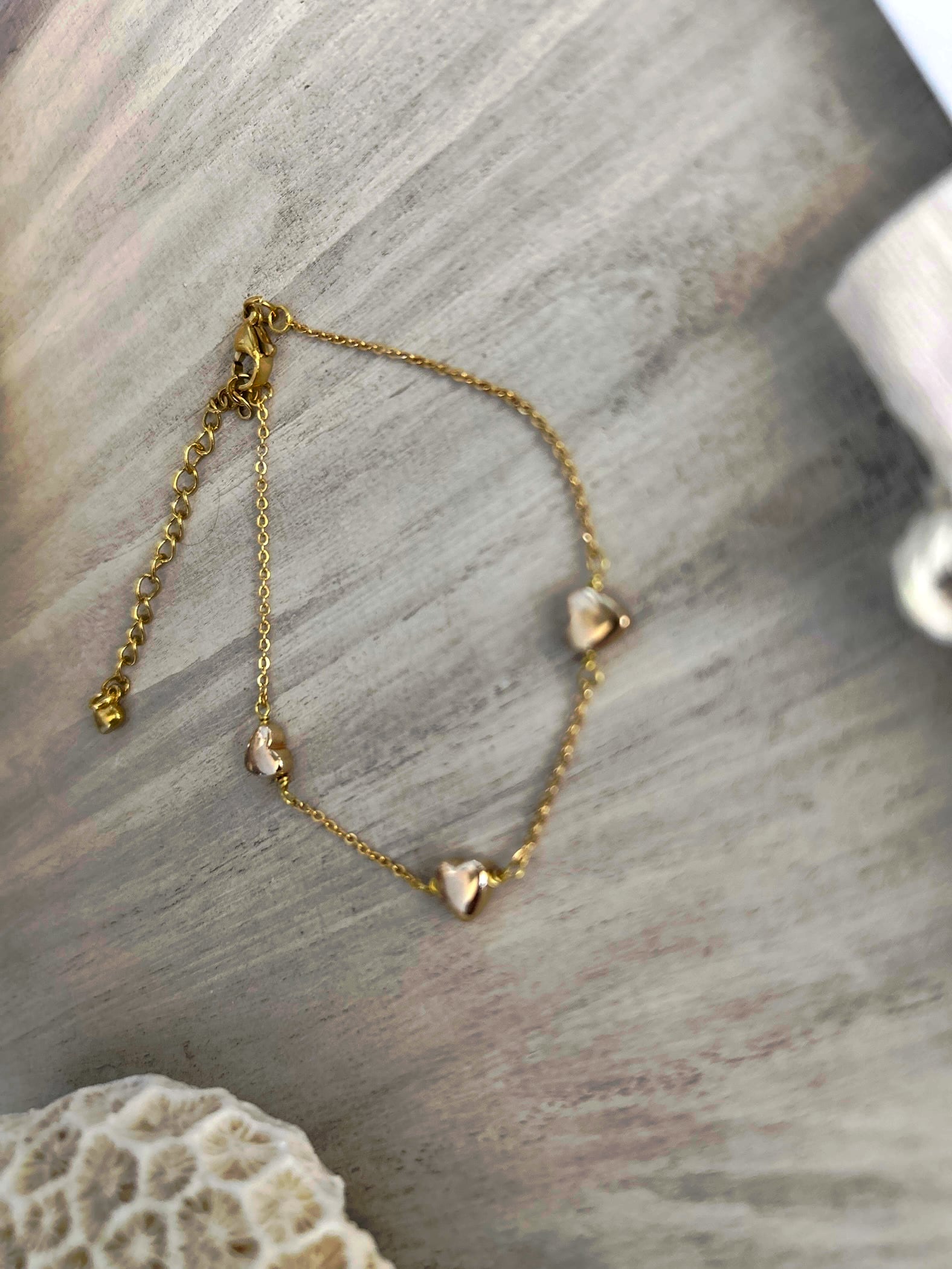 ゴールドの小さなヘマタイトのビーズと華奢なチェーンを一つ一つバランスを見ながら繋いだブレスレットです。
