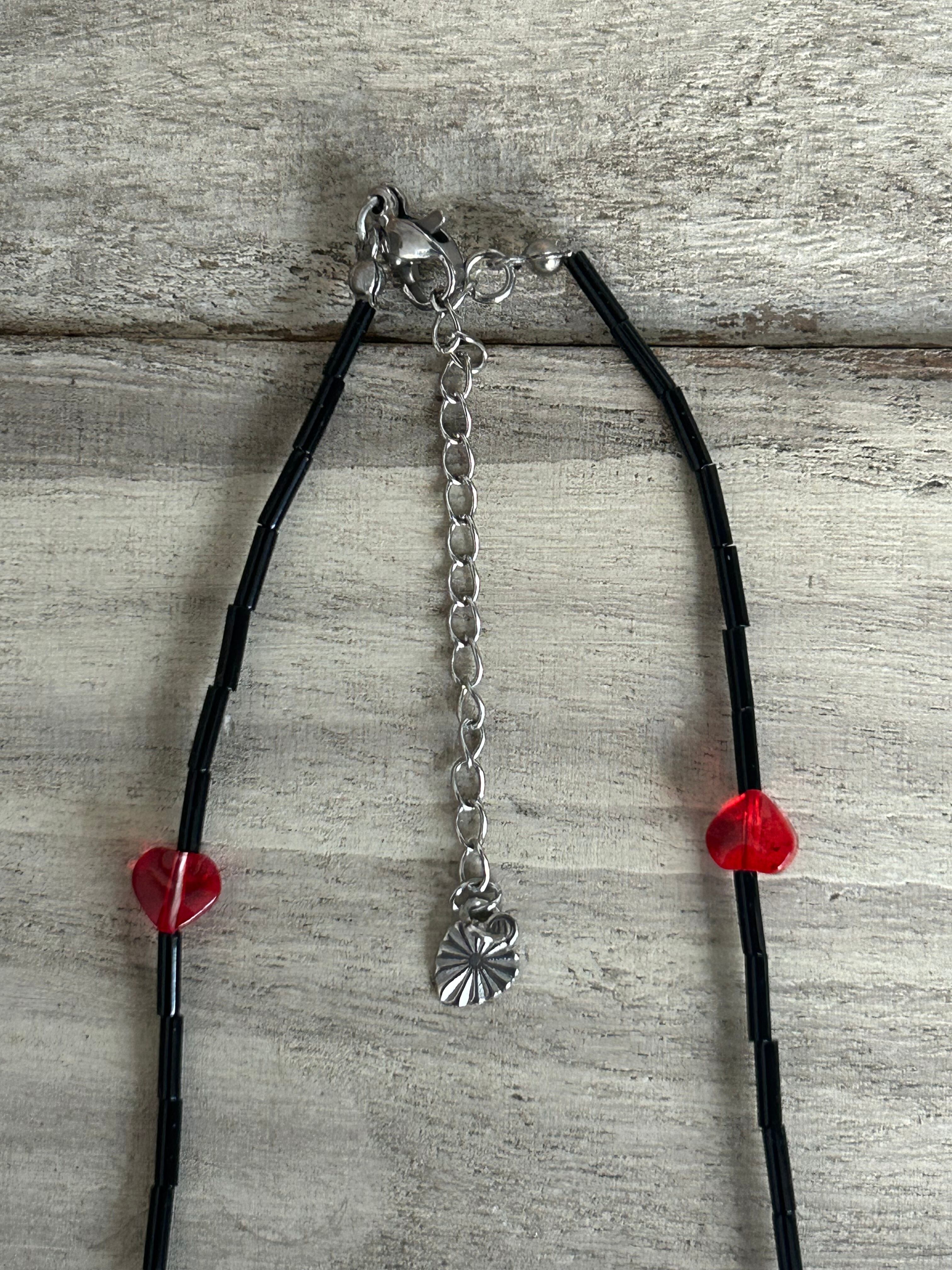 black beads red heart necklace